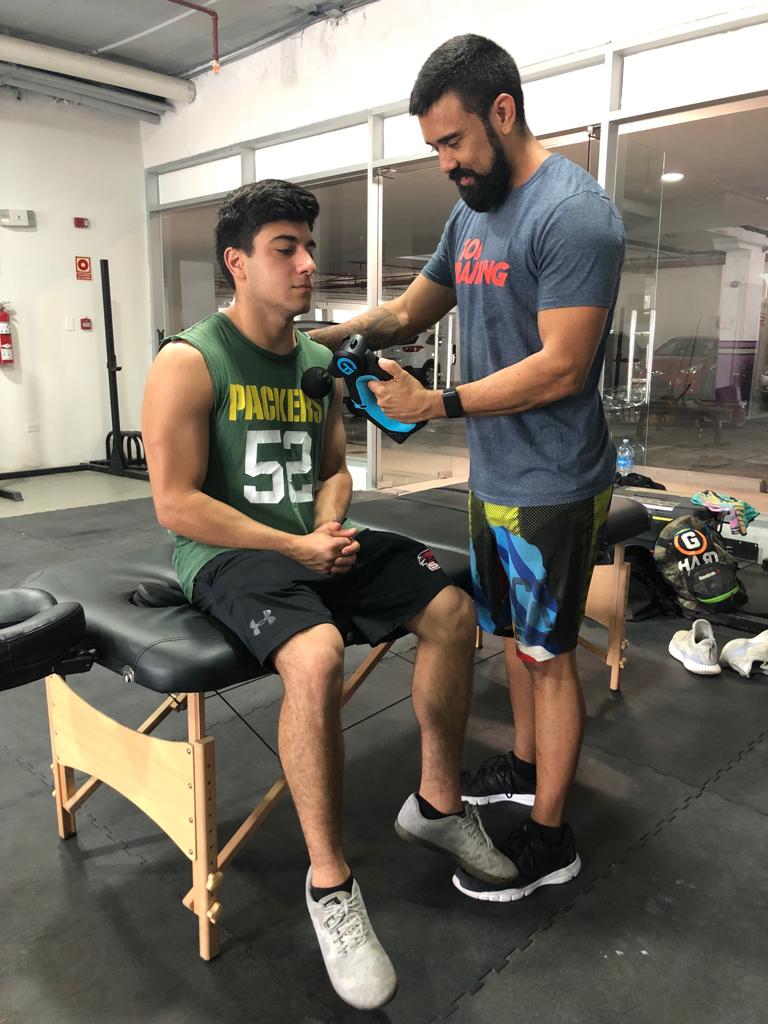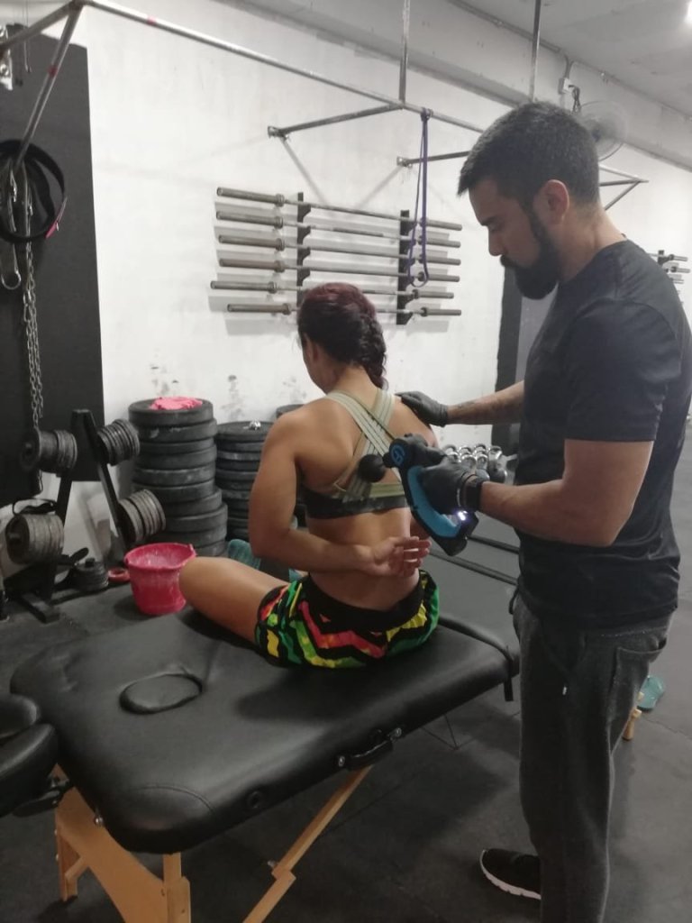 Las terapias seguían en el box; y llegaba la Theragun, una pistola para masaje excelente para soltar adherencias musculares, casi de inmediato. Con estos tratamientos los atletas se sentían más recuperados, con menos molestias y en otros casos tenía un efecto positivo en los rangos de Movimientos de sus articulaciones mejorado su desempeño.